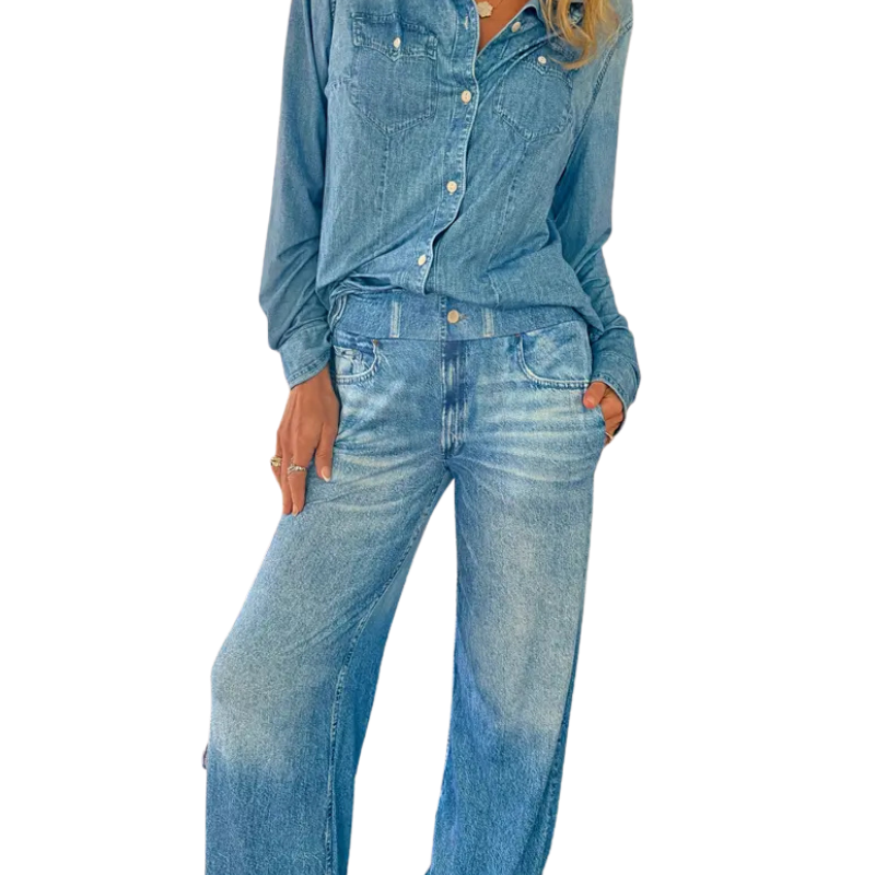 FRANCES™ – Casual Denim Button-Up Shirt and Wide-Leg Jeans